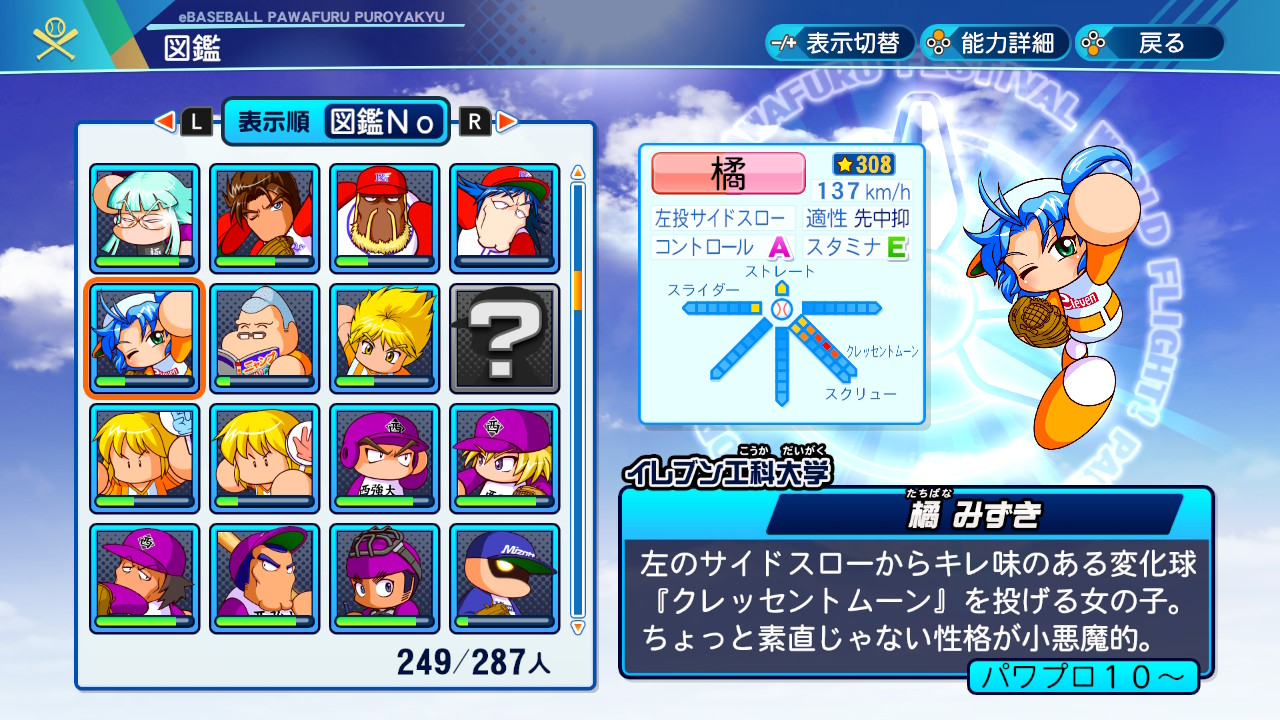 パワフェスというモードを簡単に説明すると、今までのパワプロに登場したチームが勢ぞろいの中から相手を選び対戦を行ない、勝利するとキャラクターを自チームに引き抜くことができるゲームです。好きなキャラクターを引き抜いたり、各チームのエースを集めたりしてチームを作り上げ、最終戦として作品ごとに登場するラスボスと戦う……というのがキモとなります。過去作のキャラクターがたくさん出てくるモード、というと古参ファン向けと思われ(私も新参なのでそう思っていました)、まず